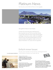 layout und satz, monatlicher newsletter für gold-, platinum- und centurion-card-inhaber für american express deutschland